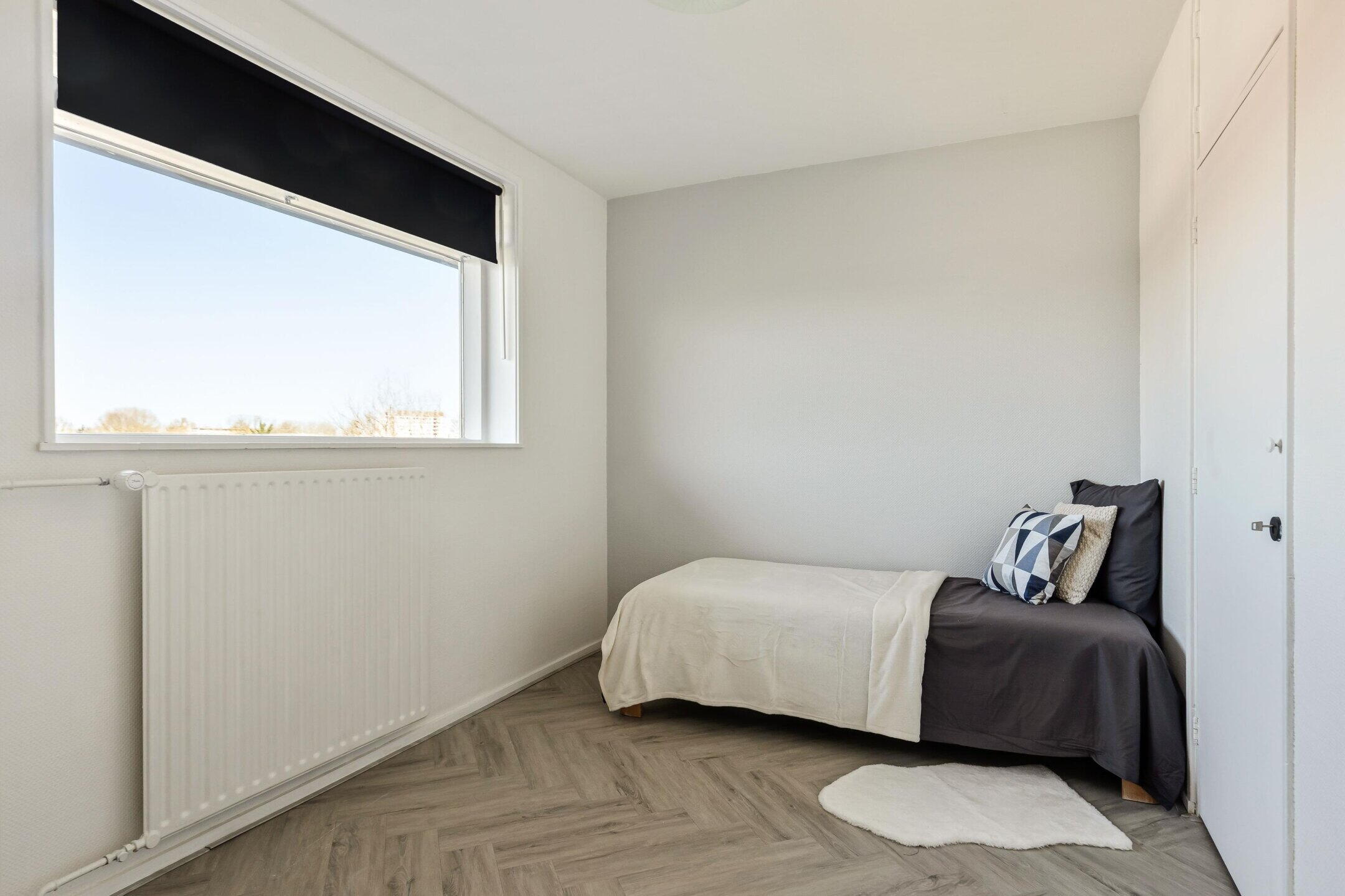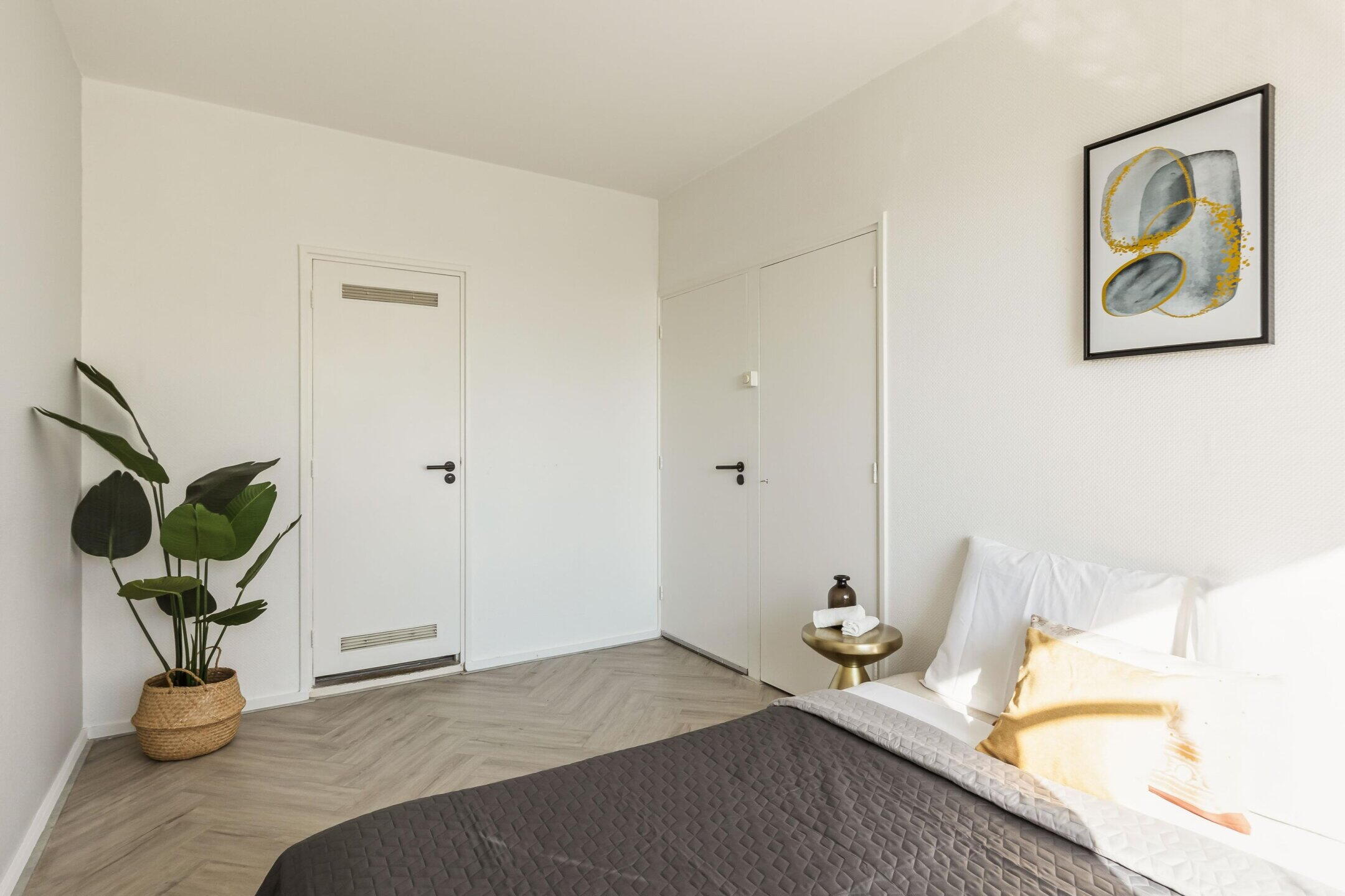 Het appartement beschikt over twee goed bemeten slaapkamers. Aan de achterzijde treft u de hoofdslaapkamer en deze biedt eveneens toegang tot het balkon, wat zorgt voor een fijne lichtinval en een ruimtelijk gevoel. De tweede slaapkamer is aan de voorzijde gelegen en dient ideaal als kinder-, werk- of logeerkamer.