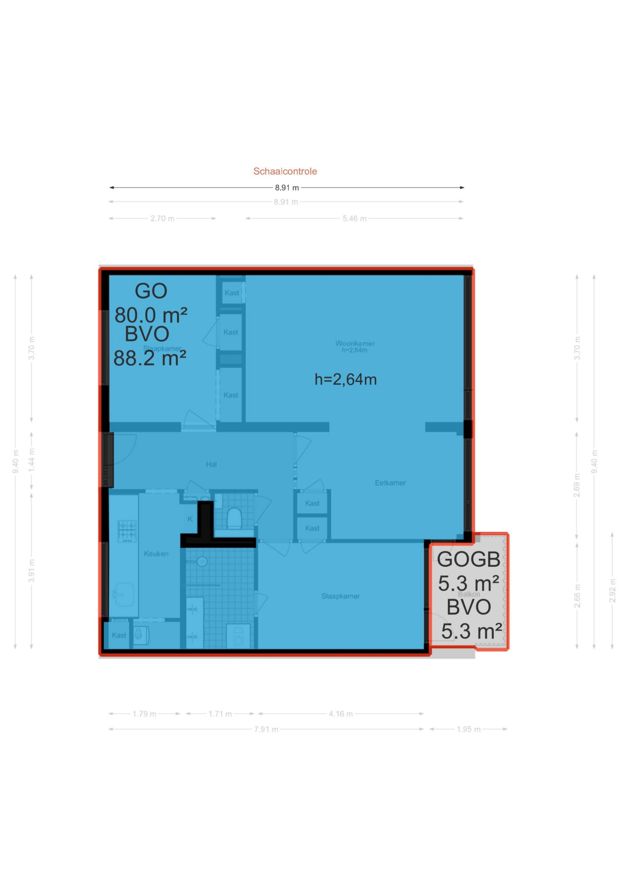 Het verkochte is gemeten met gebruikmaking van de Meetinstructie, welke is gebaseerd op de normen zoals vastgelegd in NEN 2580. De Meetinstructie is bedoeld om een meer eenduidige manier van meten toe te passen voor het geven van een indicatie van de gebruiksoppervlakte. De Meetinstructie sluit verschillen in meetuitkomsten niet volledig uit door bijvoorbeeld interpretatieverschillen, afrondingen en beperkingen bij het uitvoeren van een meting. De woning is gemeten door een betrouwbaar professioneel bedrijf en koper vrijwaart de medewerkers van Voorma & Millenaar makelaars o.g. en de verkoper voor eventuele afwijkingen in de opgegeven maten. Koper verklaart in de gelegenheid te zijn gesteld om de het verkochte zelf te (laten) meten conform NEN 2580.
